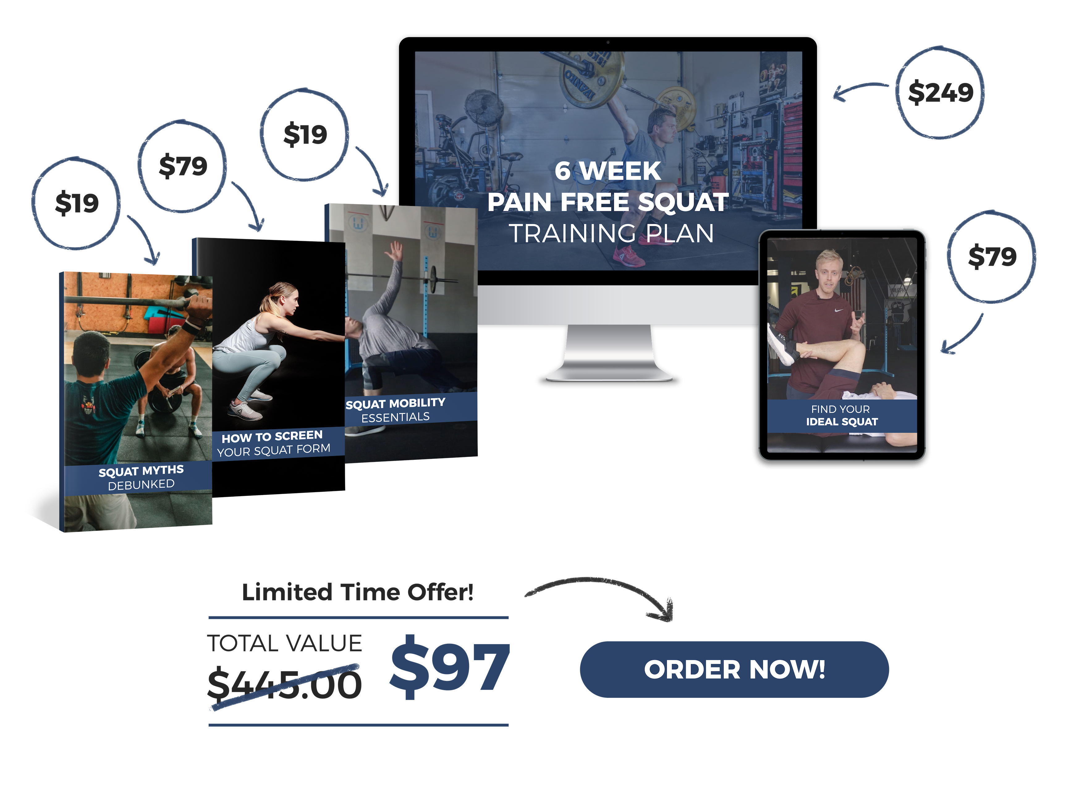 Being forced into a cookie cutter squat form will often do more harm than good. You need to find YOUR ideal squat position, and follow a PROVEN program to get you back to squatting PAIN FREE!